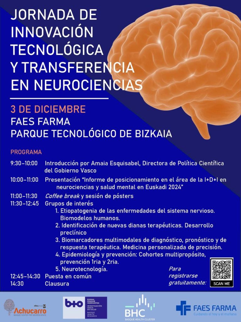 The conference will take place at the headquarters of FAES Farma, in the Bizkaia Science and Technology Park, in Derio (see location), on Wednesday, December 3, 2025, between 9:30 a.m. and 2:30 p.m.