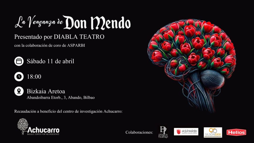 United for this cause, ASPARBI (Parkinson Bizkaia Association), Diabla Teatro, Achucarro Basque Center for Neuroscience and EHU come together to commemorate this world day with a charity event that will also surely touch our hearts, because we will have musical performances by ASPARBI members, which will give way to the play “La Venganza de Don Mendo”.